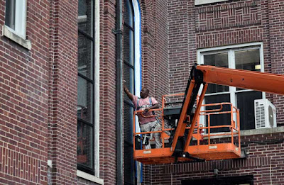 | Sept. 6--Painter working at Warde Hall, oldest building on Mount Mercy University campus. Some things that are old are worth holding on to. Like reading. |
